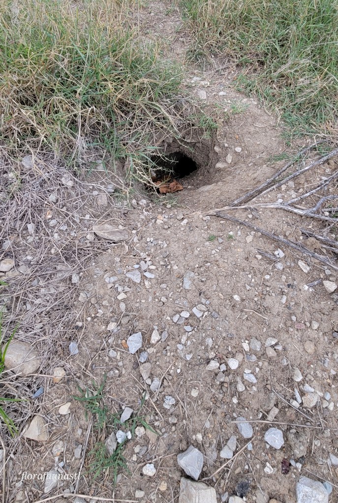 I went out on my own to get some close-up pictures and investigate its territory. I observed at least three different woodchucks living along this particular stretch near one of the Great River Greenways and plenty of holes along the sides of the steep rocky riverbanks. It is much more of a waiting game to get some pictures as they will run, at 10 mph, back to their hole if they see you approaching. As I was venturing down one of the rocky sides of River Des Peres to get a photo, I had lost my footing on the loose gravel and started sliding down the steep side quickly. I ended up on my stomach and thankfully was able to get a hold of a large rock before the slipping got out of hand. While I was making my way back up in a crawling position, I had accidentally come face to face with a woodchuck preparing to leave one of its holes that I was not aware of until that moment. There I was, maybe two feet away from this shocked woodchuck who was startled and staring into my eyes with its pitch-black eyes before it turned and ran back into its home. I assume it decided not to gnaw my face off because I was already struggling to get back up the side of the rocky hill it easily climbs and was showing me mercy. I continued my journey back up the side of the hill and safely made it to stable ground. I backed off and waited for the woodchuck to emerge and was able to get some good photos.