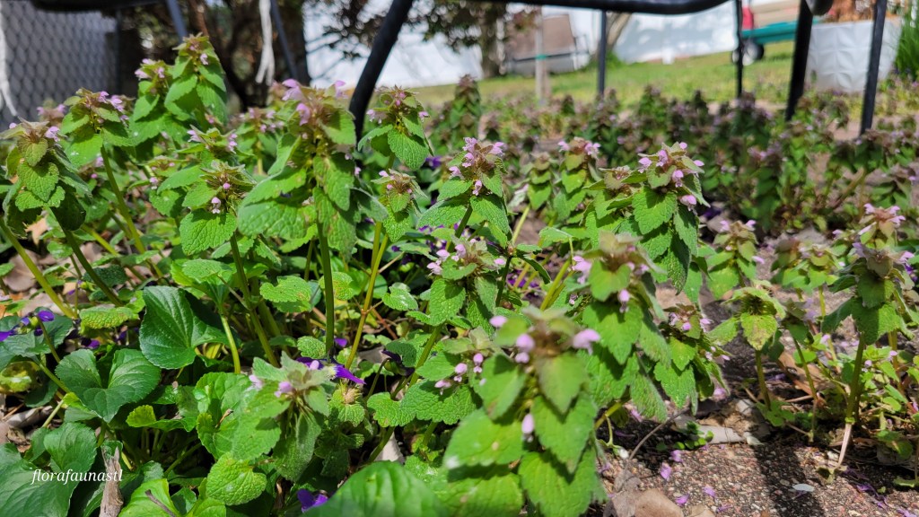 A lot of these highly invasive and prolific weeds are in fact invasive species, although they have been here for a very long time. Purple deadnettle is native to Eurasia and was brought to North America by settlers. It has since made its way across the United States and Canada and can be found in meadows, fields, gardens, and my patio. In addition to being edible, there is a history of use with this plant in folk medicine. It is claimed to be an antibacterial, antifungal, anti-inflammatory, a diuretic, diaphoretic, and it is also used to make salves as it soothes itching. Now keep in mind, full disclaimer here, I am not a dietitian nor a doctor, do your research before you go ingesting any wild plants and making salves. As well, be sure that they are taken from a place where there have not been pesticides or weed killers sprayed if you decide to harvest and consume.