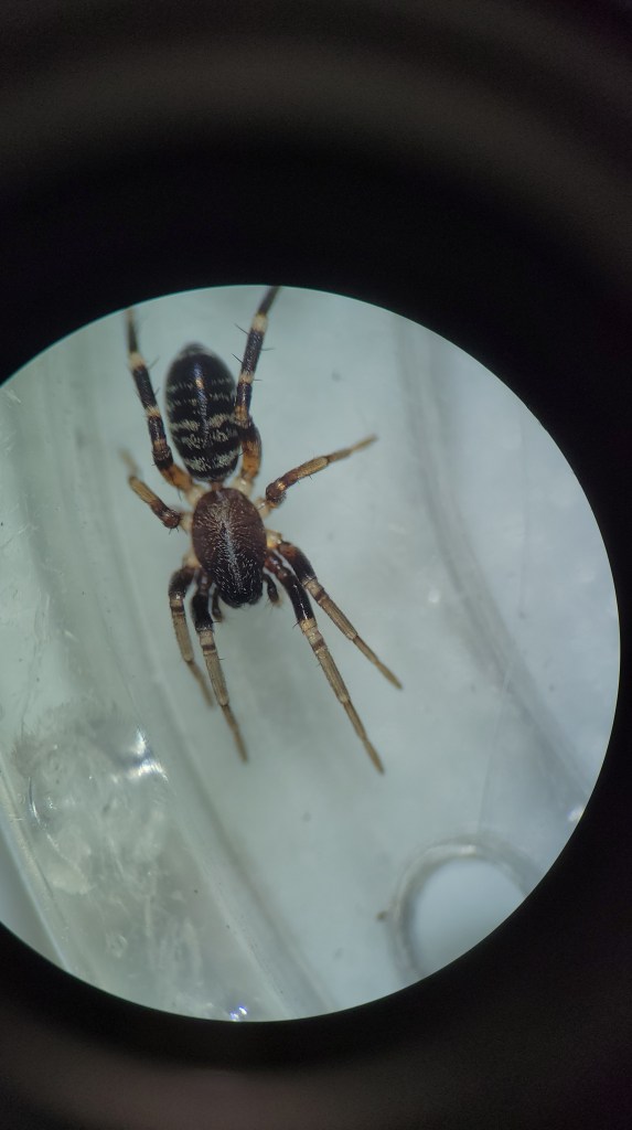On the other side of the mimicry spectrum we have the Castianeira variata, which is very similar to the Many-banded ant mimic spider (Castianeira longipalpa). These spiders are both ant mimics but differ ever so slightly; C. Variata has narrower and fewer light bands on the abdomen, but outside of this they are nearly identical. In fact, the determining factor for me to classify this specimen as C. Variata instead of C. Longipalpa comes down to the quirky characteristic of waving around the abdomen while at rest. This was observed in 1969 by Jon Reiskind, although I was unable to uncover any information on why they do this. I have a few theories though, some ants will wave their stingers in the air for communication with eachother as well as a show of defense, perhaps C. Variata is mimicking this behavior. I also wonder if maybe it is meant to attract prey. Lastly, it could simply be that they have a very catchy tune stuck in their cephalithorax.