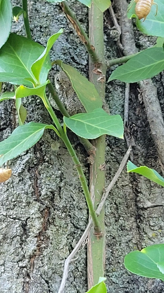 After getting some good videos and pictures for the site, we let the frog go near a tree in the backyard. The small forest that once extended over the pool has since been cut back, and the pool has been cleaned and is now fully functional. The Webbs have been swimming and enjoying their new home, but the gray treefrogs will have to find a new body of water to lay their eggs. We were recently at the Webbs’ house for a get-together, and judging by the many trills in the distance, it seems they have already discovered a body of water not too far off in the distance. Perhaps another neglected pool is being utilized and claimed by the gray treefrogs.