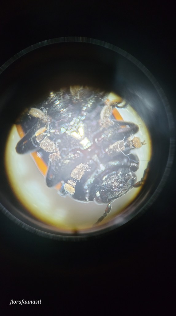 Sometimes in life the little things are what matter most, or at least that’s what I have been told. Being in the doghouse, I decided taking out the trash would be a strategic way to earn some small but compounding good points with the wife. I’m not confident that act alone put the doghouse in the rearview mirror, but I am sure it had some measurable impact. Jokes on her though, I don’t mind taking out the trash because it gets me outside and you never know what critters lurk beyond the threshold. On this particular day I spotted what looked to be a ladybug on steroids. Its color differed and its body structure differed slightly as well since it had less of a neck than a ladybug does.