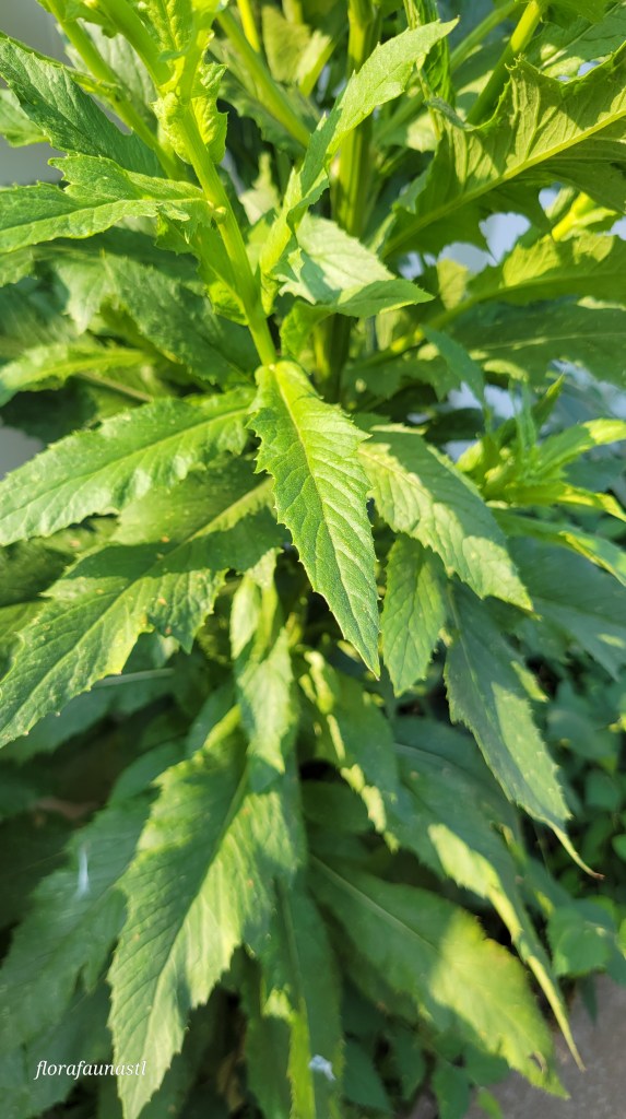 As mentioned in an earlier post about Eastern Nightshade, I let areas around the fence grow untouched to see what nature would bring to fill the new void. One of the most prolific of these void fillers was a peculiar-looking plant. At first, the serrated, irregularly toothed leaves led me to believe that this may be dandelion, or some kind of wild lettuce. But the plant continued to grow taller and taller, eventually surpassing my 5’10 height. This tall, uniformly green plant began to produce panicles at the uppermost stems. Panicles are loose clusters of fruits or flowers. These odorless flowers looked almost like dandelions before they opened up and revealed their golden yellow flower; only these never opened up.
