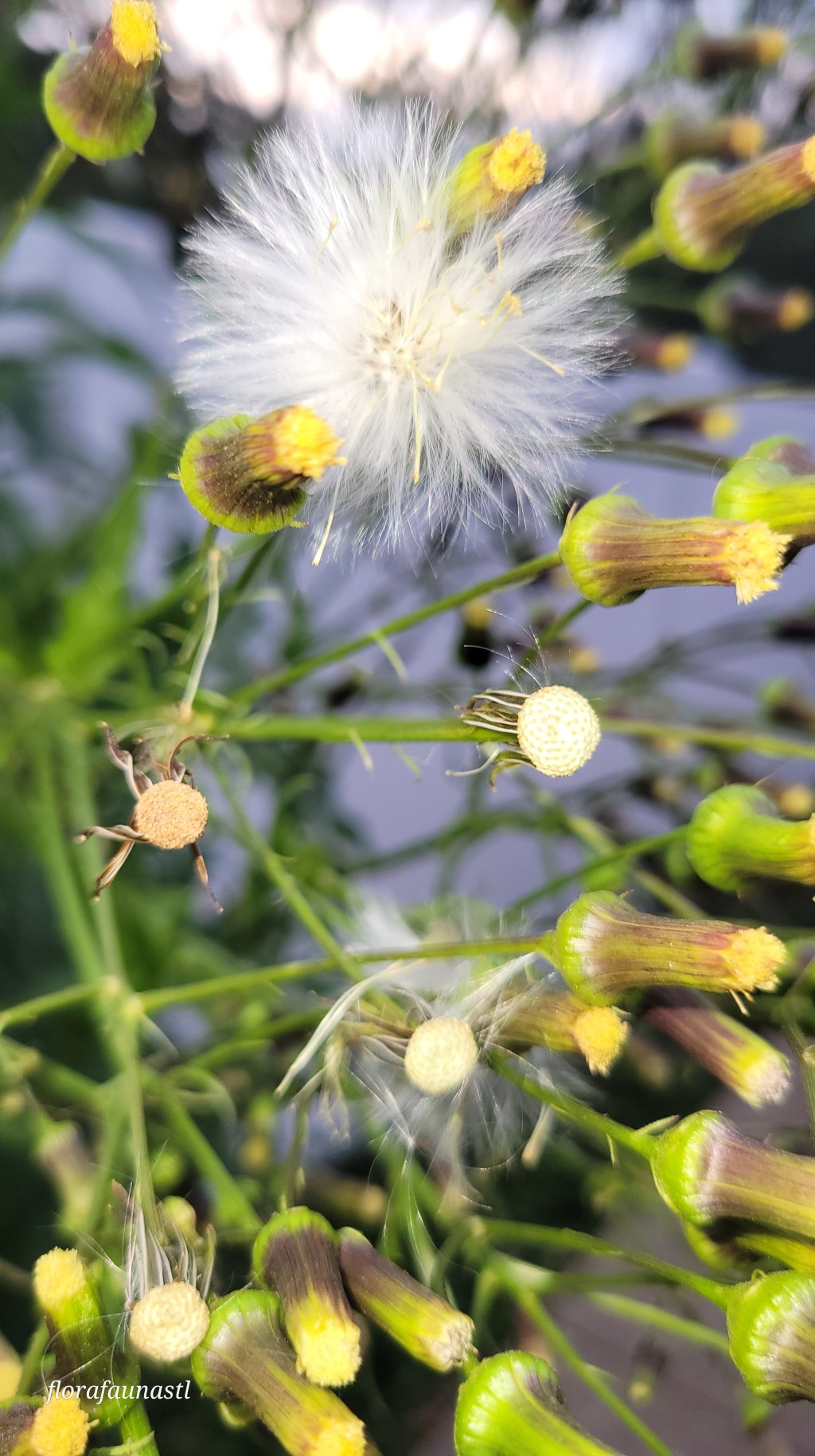 Instead, this flowerhead houses (totally) tubular florets with whitish-yellow corollas (petals) that barely protrude from the cylindrical bracts/phyllaries. Phyllaries are the green leaf-like structures that surround the base of flowers and/or fruit to provide protection. Earlier I stated that when I first saw this plant growing, I thought maybe it was a dandelion. After allowing it to grow, it clearly was not a dandelion unless the ooze from TGRI the second Teenage Mutant Ninja Turtle movie somehow contaminated my yard. Although my initial guess as to what this fledgling plant may be was wrong, I was not too far off. This native annual plant is Erechtites hieraciifolius (commonly known as Pilewort, Fireweed, or Burnweed) and is a member of the daisy family (Asteraceae), as are dandelions. These distant cousins share a few other similarities besides leaf structure, though.