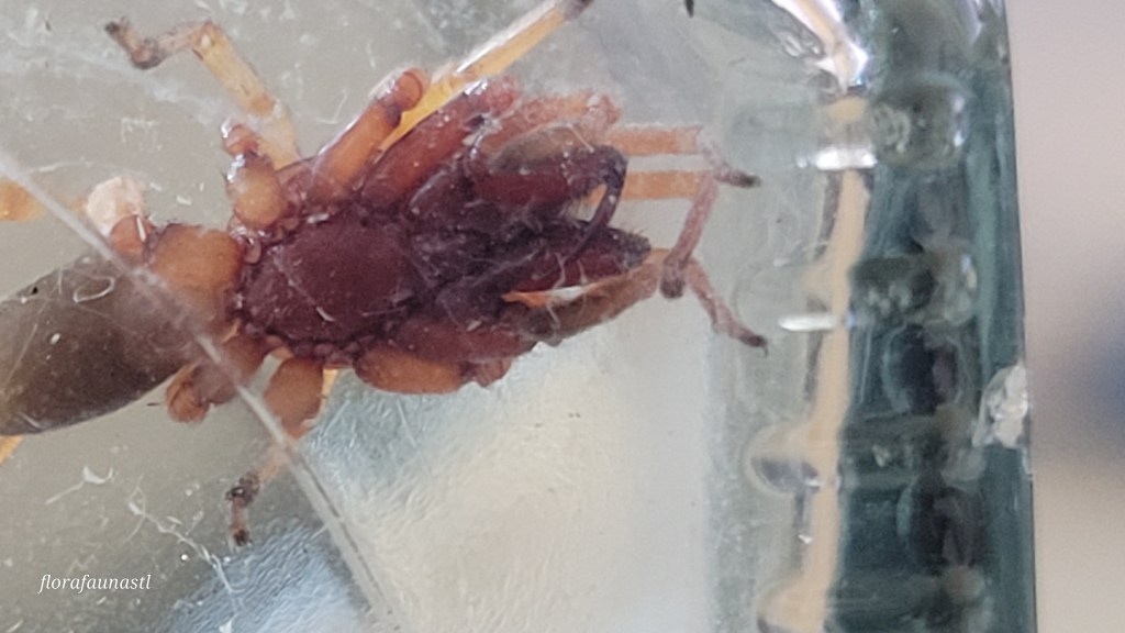 One of my first posts was about the Broad-faced Sac spider and they look very similar but there are some major differences, the first being the massive labidognathous chelicerae. Let me explain what that means so you can avoid having to do extra research. The chelicerae are mouthparts of the subphylum Chelicerata, which spiders belong to. There are three types of chelicerae one of which is known as Jackknife chelicera, which has two different forms. One form opens parallel to the body and is called orthognathous chelicerae, the other form is rotated and opens at right angles to the body (creating more of a pinching motion), this second form is called labidognathous chelicerae and is found in the infraorder Araneomorphae, which woodlouse spiders belong to. Another easy way to tell the two apart is by their eyes. Woodlouse spiders have 6 eyes closely arranged in an “arch” whereas the broad-faced sac spiders have 8 eyes with more of a “smiley face” pattern. After writing that last sentence I realized the bulk of my readers probably won’t be getting close enough to look at the eye patterns of their house and garden guests…but if you do, now you know.