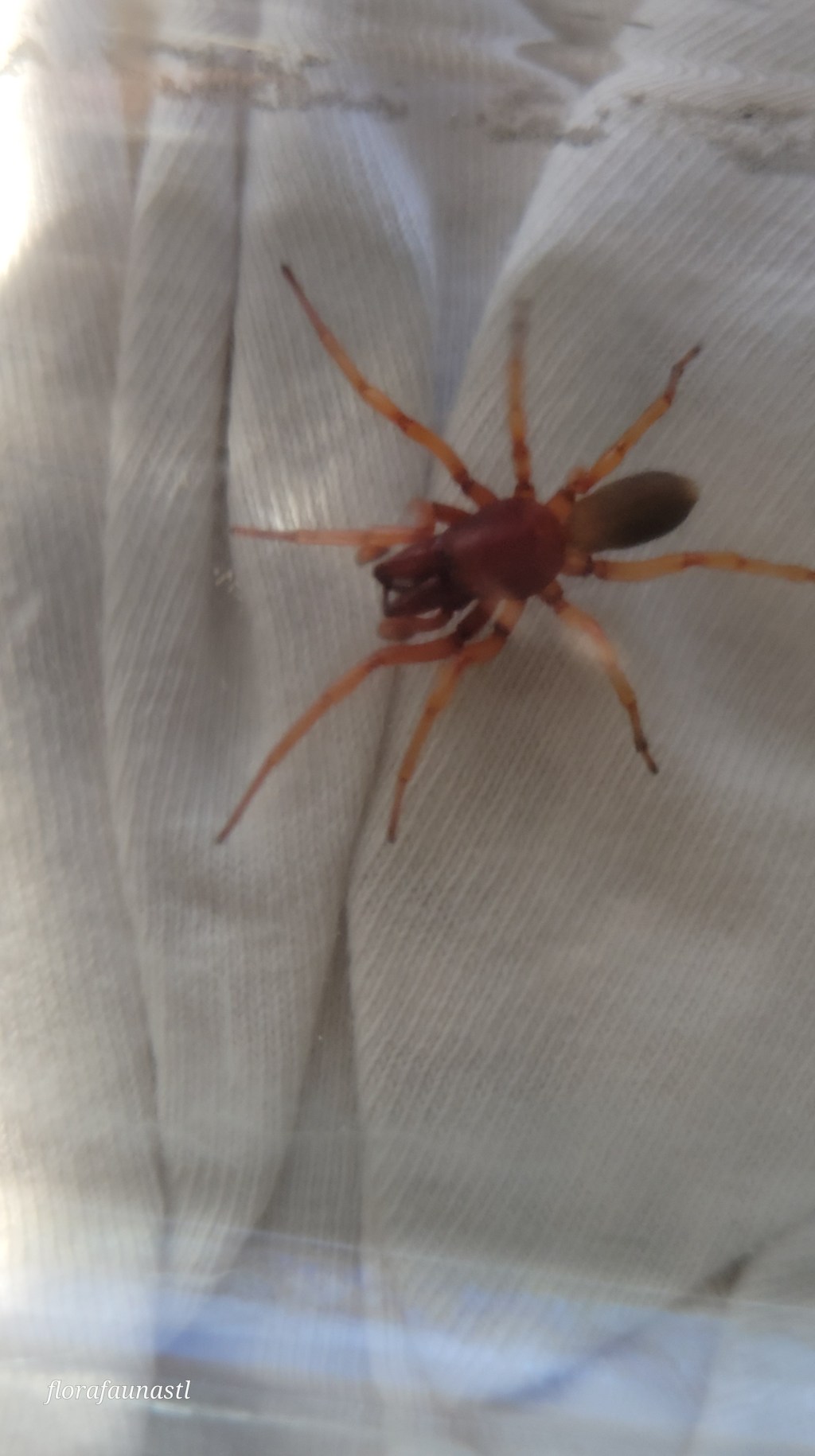 Woodlouse spiders can be found year-round through much of North America, and although they are believed to have originated in the Middle East, they are considered to be native at this point in time. They can often be found taking up residency in basements, attics, under rocks, wood piles, logs, etc. The males are slightly smaller than the females, which top out at a 60th of an inch in length. Both males and females are colored the same sporting a rusty-red cephalothorax and legs while having a shiny grayish-beige abdomen. Woodlouse spiders are nocturnal and are active hunters, only building webs to retreat to after a long day of hunting their favorite prey, which they are named after; the woodlouse. For clarification, woodlice have many aliases, to name a few: roly-poly, pill bug, sow bug, wood pig, and cheesy bobs. I promise you I am not making those names up and I will soon do an article on this abundant land crustacean.