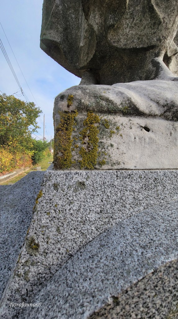 Clinging to the statues and headstones of the graveyard is none other than one of the Xanthoria Lichens, more commonly known as Sunburst Lichen. It is worth noting that there are estimated to be at least 20,000 species of lichen, with North America being home to more than 3,000 species. The professionals who study lichen also believe that there are many sub-species that have yet to be identified. Through my research and asking around on some mycology forums, I believe this is Xanthoria parietina, but please do not hold me to that exact species. For the purpose of this article, though, which will be very high-level, we won’t need to pin down an exact species.