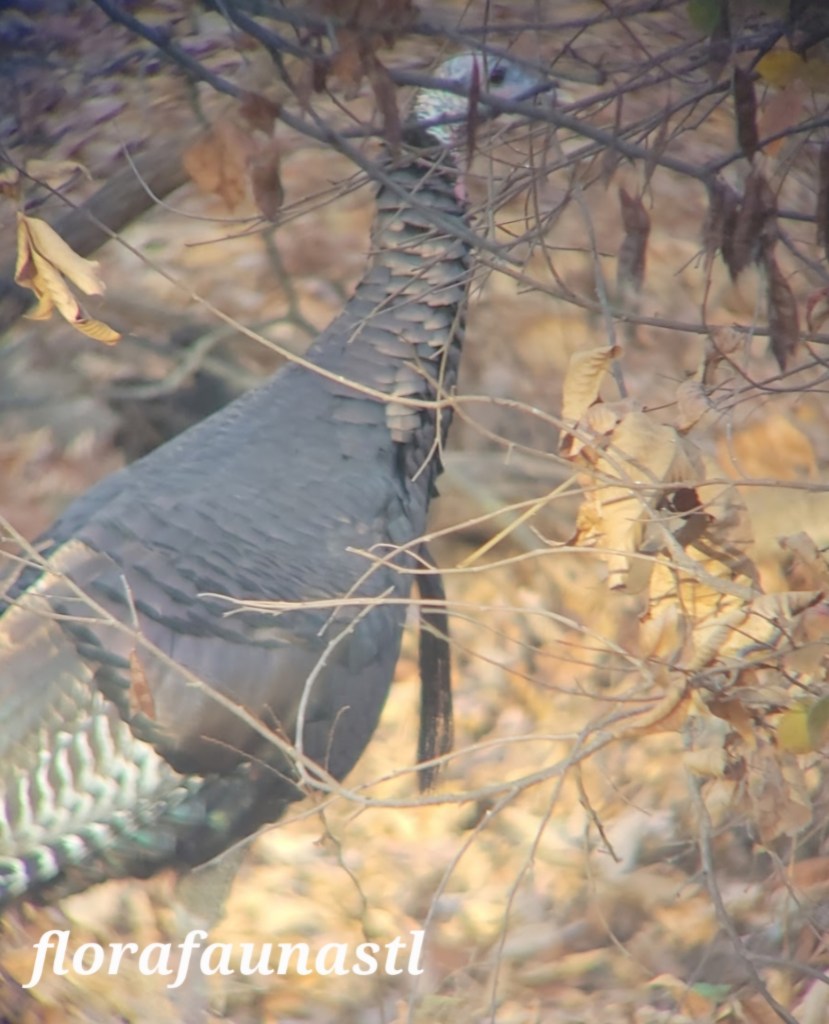 Wild turkeys play an important role in the ecosystem by providing food for a wide array of predators and omnivores alike. Wild turkeys are very fond of acorns but also eat insects, reptiles, wild fruits, grass seeds, and many other grains. During the day, wild turkeys can be found foraging for their favorite foods, but by night, they seek the safety of the canopy. Yes, some of you may not know this, but turkeys are actually great at flying, reaching up to 60 mph while in flight. I remember the first time I saw turkeys flying along the side of a highway, and it was a very surreal sight as they seemed too big to fly, but there they were, clearing the road and heading to an open field. Despite their flight speed and the ability to run 25 mph, the wild turkey has not been able to escape our diet. It appears that 20 million years of evolution makes for one delicious bird. I hope you all have an amazing Thanksgiving, and may your homes not be haunted by a poultry-geist.