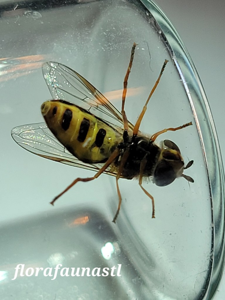 I have observed these Syrphids zooming around my yard (at roughly 8 mph) and I have seen plenty of them at the Missouri Botanical Gardens. They are out and about enjoying their short adult lives from April/May until October/November when the weather gets too cold and the eggs will overwinter. I know a lot of folks wouldn’t agree, but me personally, I find insect watching much more fascinating than birdwatching. There are 800+ known species of hoverflies in North America alone, and spotting and identifying them is a fun challenge for sure. And for the record, yes I do tend to look similar to the Bug Catchers who tried to battle you in Pokémon all those years ago. Keep the net and swap out the backpack full of Poké Balls for a backpack full of jars, and there you have me. I know some fly species can be annoying, but these ones don’t bug me in the slightest. Until next time, go out and explore!!!