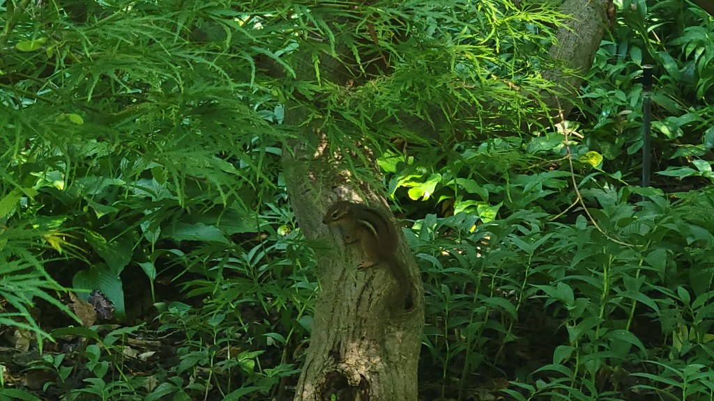 I say this begrudgingly, but even I, until recently, was not all that intrigued by chipmunks in the slightest, especially after having grown up watching “Chip n Dale Rescue Rangers.” When your first exposure to chipmunks involves one wearing a Hawaiian shirt performing slapstick comedy and the other one wearing a leather bomber jacket fighting off a myriad of bad guys…the real-world ground squirrels just don’t live up to the hype. But my daughter, who also experienced her first exposure to chipmunks via television, has decided they are her spirit animal. She has a running bit where she will bend her arms up with her hands hanging mid-chest and make the nibbling sounds and gnawing motions with her mouth and refers to herself as “Chippy.” She has since seen many chipmunks in forested areas around the city: Forest Park, Willmore Park, the Saint Louis Zoo, and often in the English Garden at the Missouri Botanical Gardens.